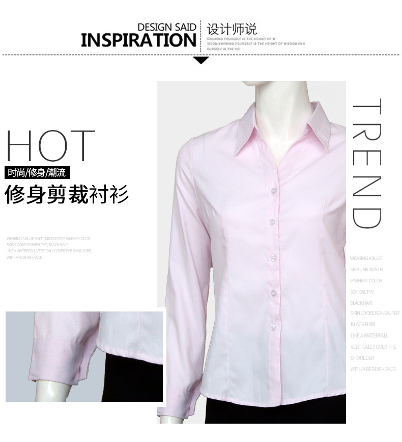 訂購:廣東粉色小斜條棉質女士長袖襯衫