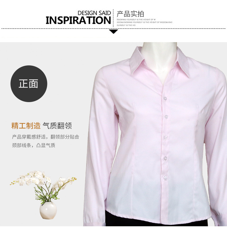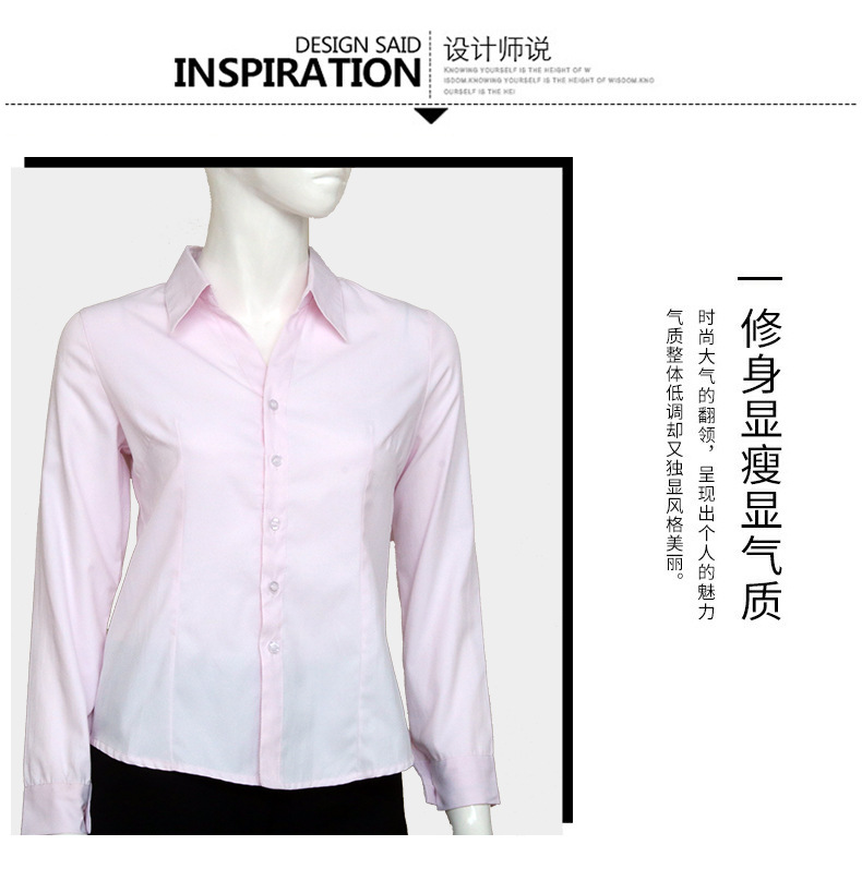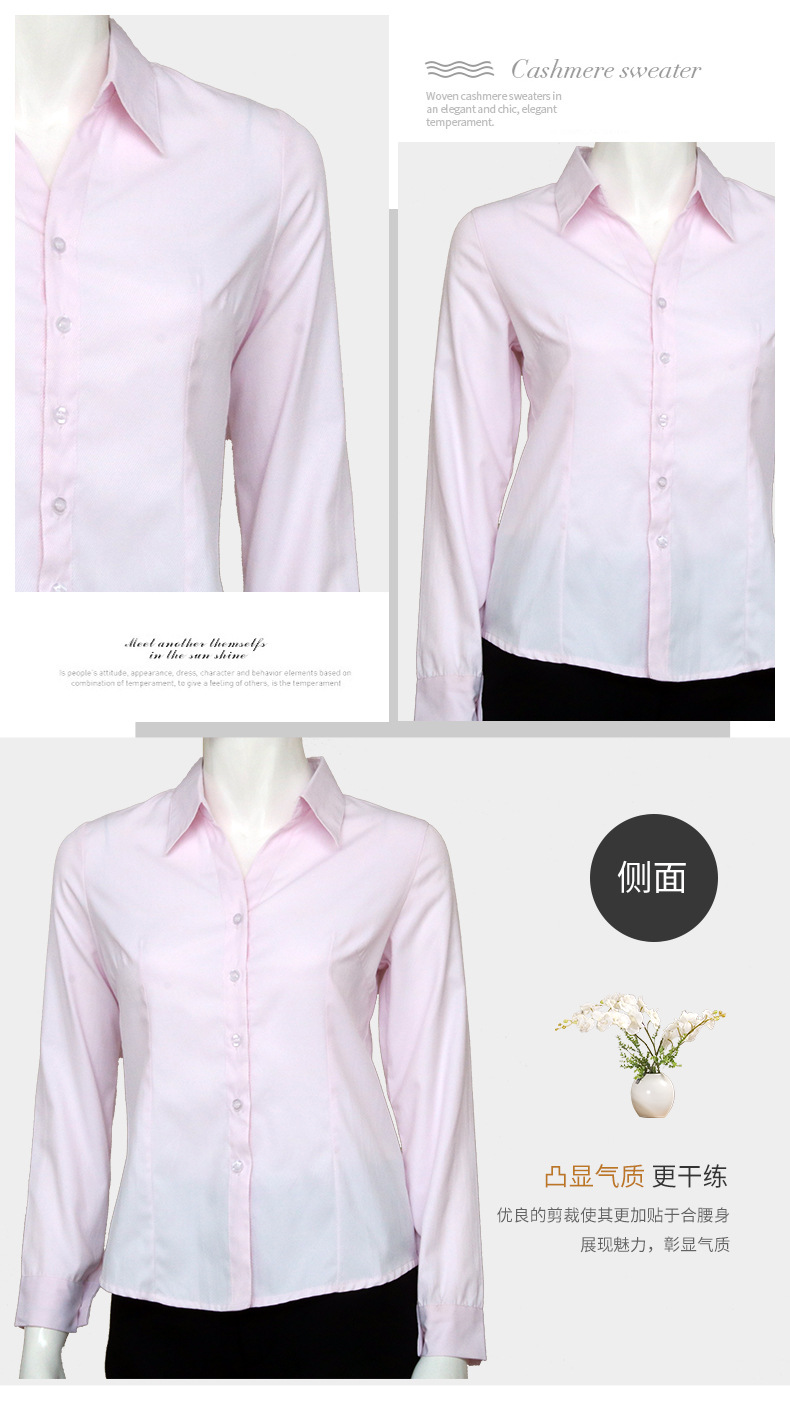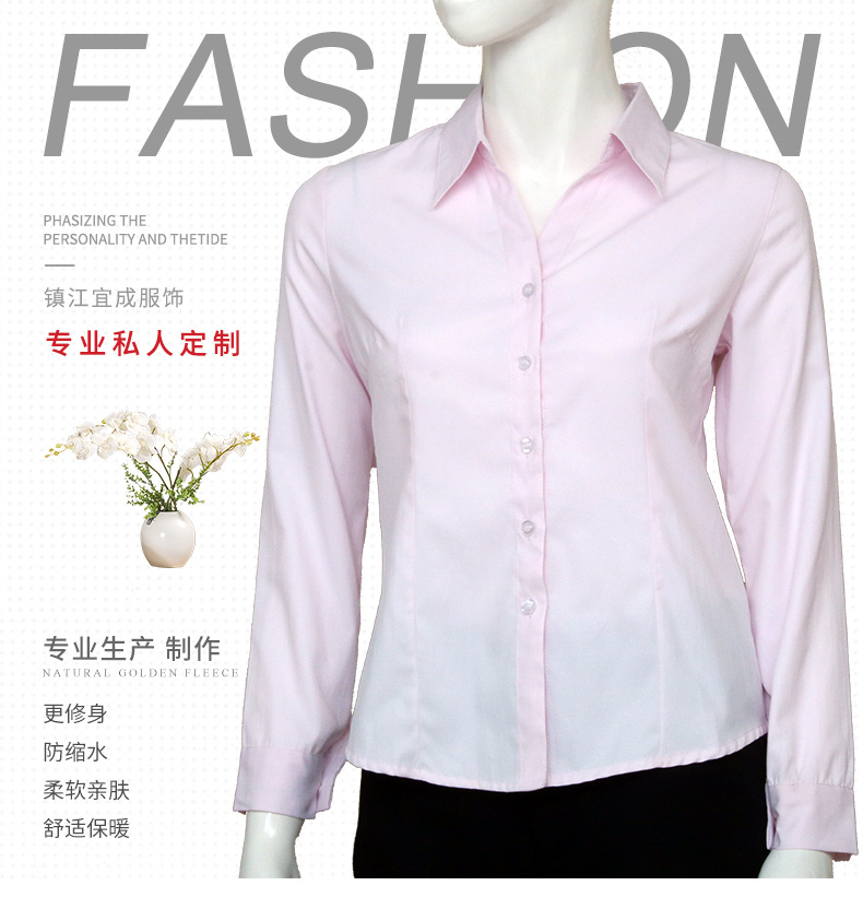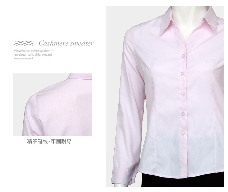 • 廣東粉色小斜條棉質女士長袖襯衫