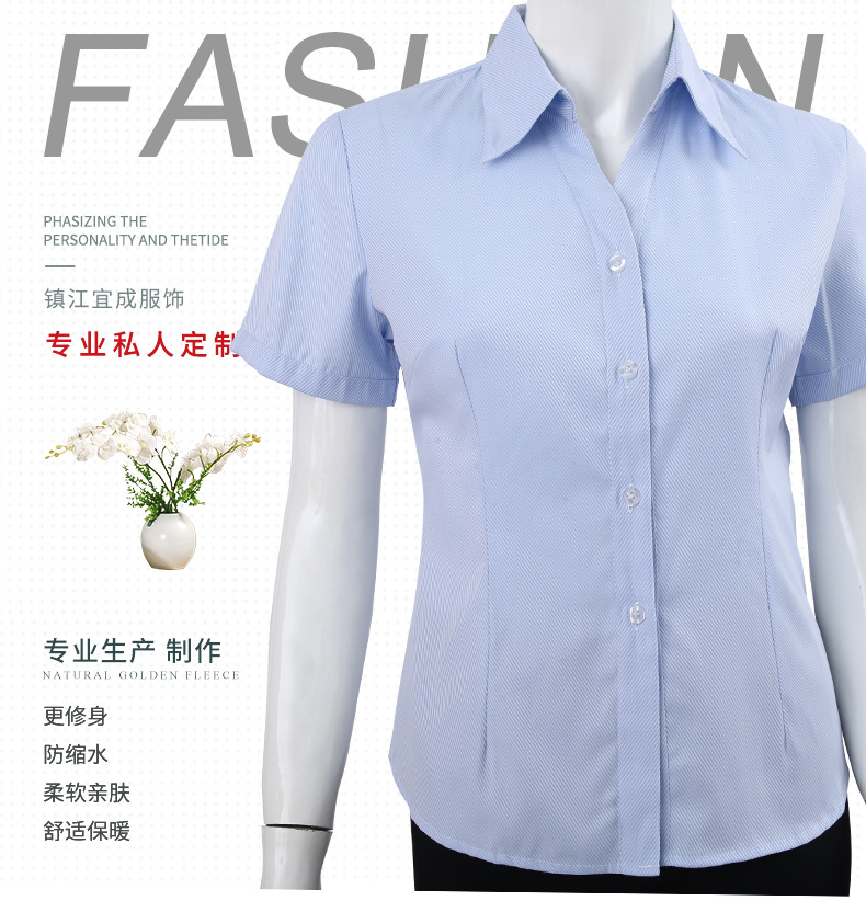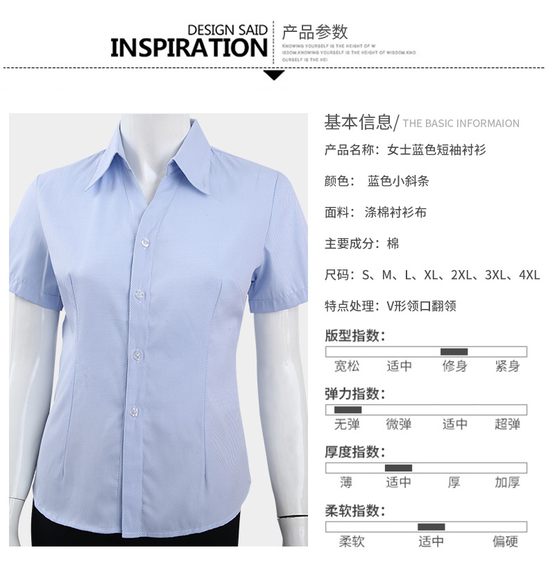 袖長 | 短袖 | 工藝 | 印花/印染 | 貨號 | 女士藍色短袖襯衫 |